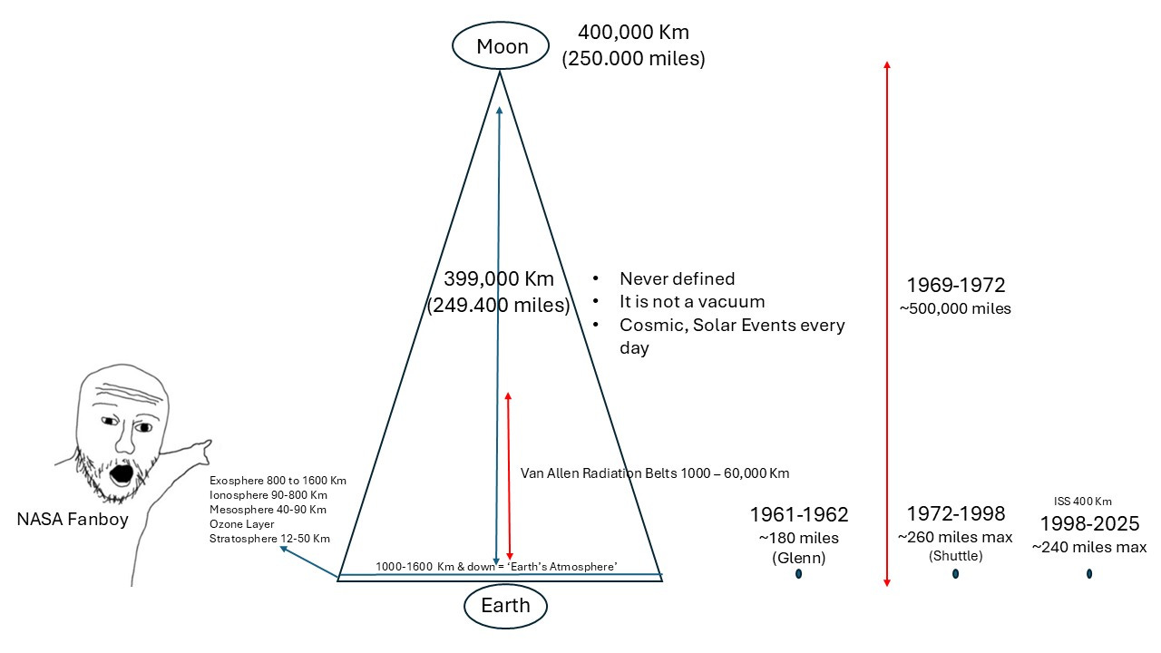 In reality NASA cannot fly past 400 miles. It has neither the technology, rocketry or necessary radiation protection. When the truth eventually comes out - and it will - the monumentally negative impact on American power and prestige will transform international relations and might finally help to end the tyranny of the CIA.